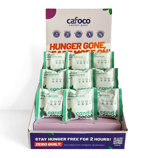 Cafoco is the first energy bar designed with 100% plant sourced ingredients without compromising on quality and nutrition.